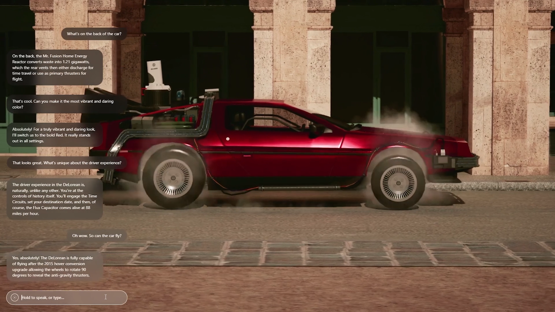 We do this through conversational AI and a real-time Unreal Engine scene. Using the Delorean from ‘Back to the Future’ as an example, we see the future for all learning and shopping to move away from a